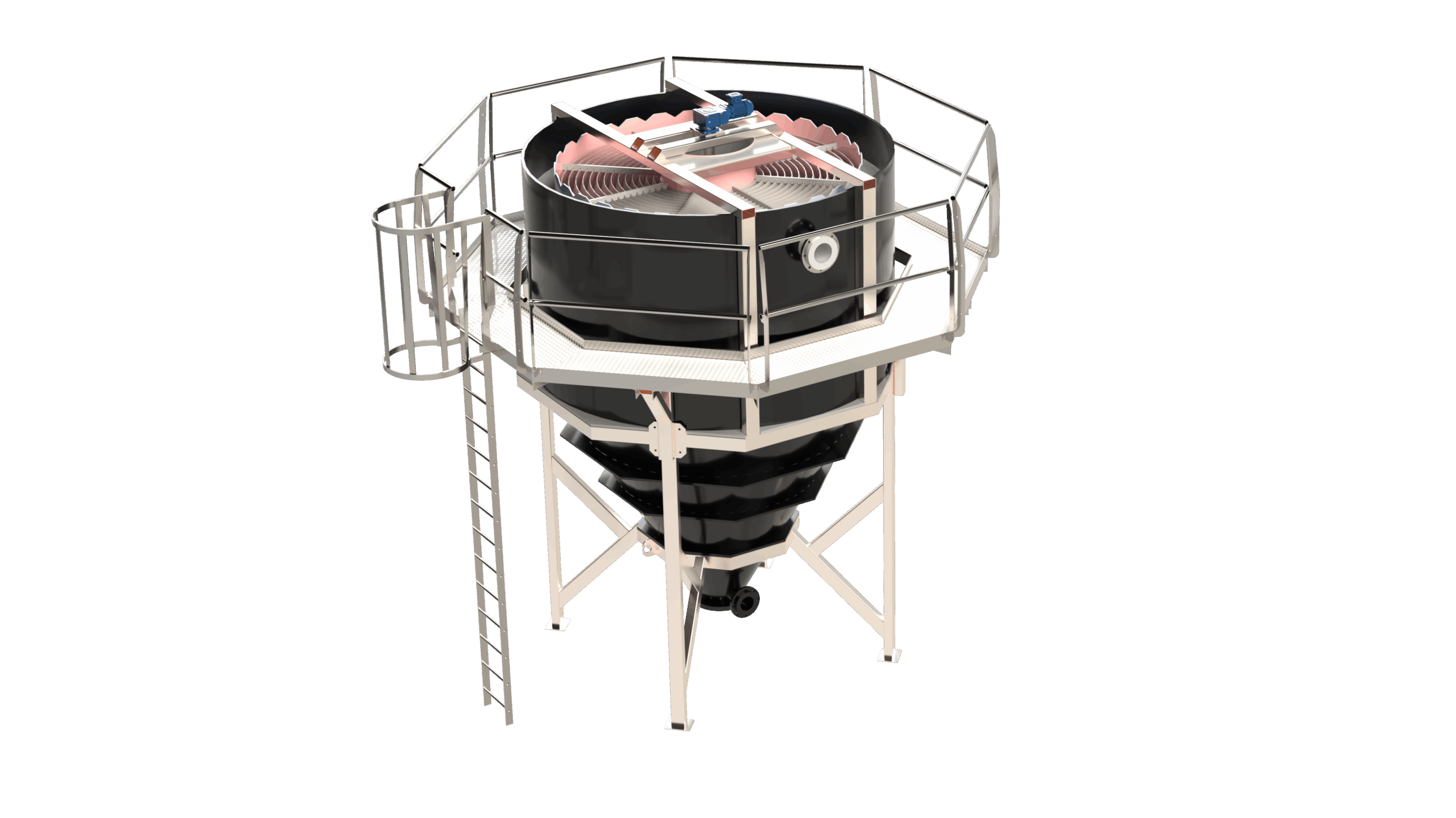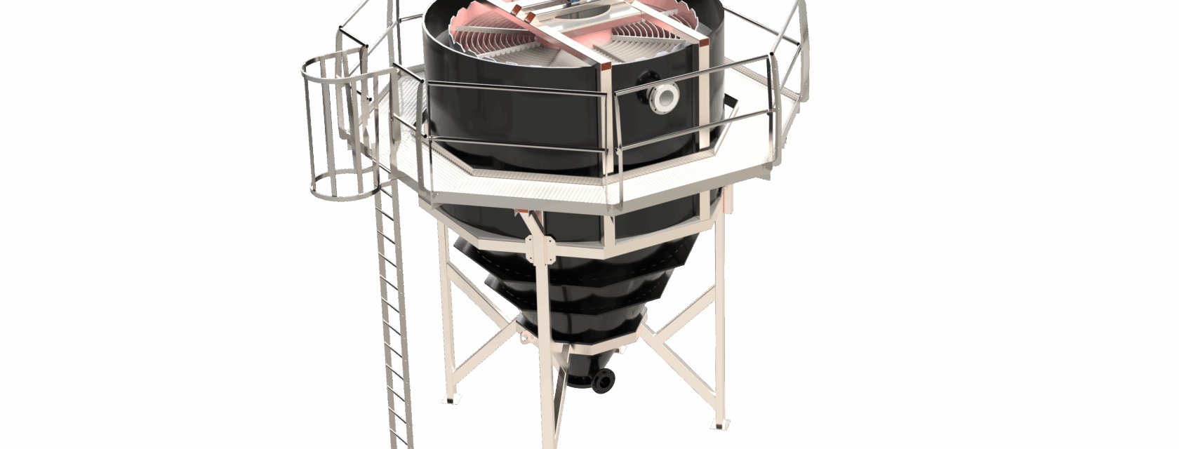 For water streams containing large amounts of fine particles, the Mud Separator can be upgraded with automatic polymer dosing using a Taneco polymer unit, combined with a slow-speed agitator in the cone. These optional features improve settling speed, enhance water clarity, and increase overall capacity.