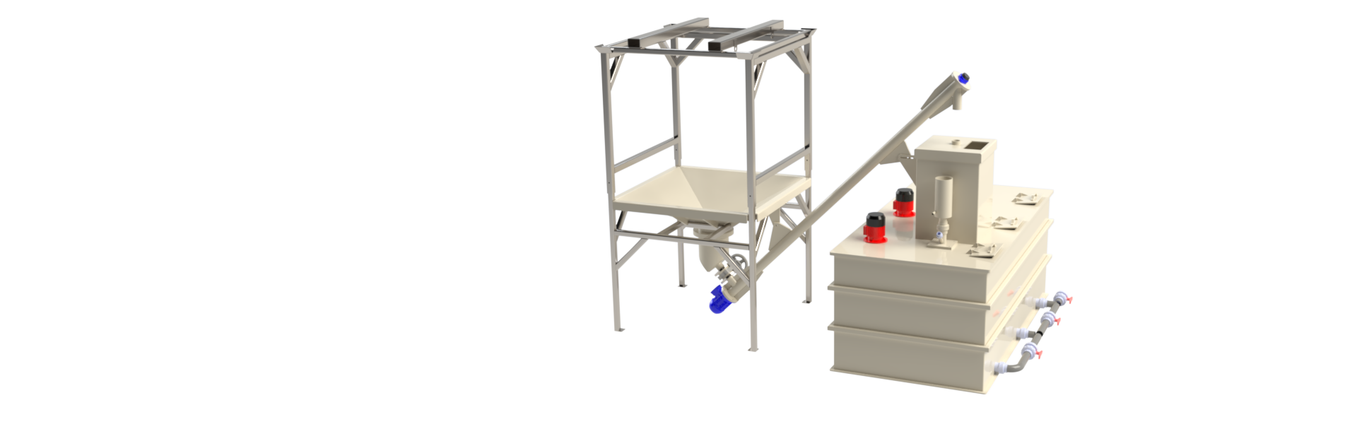 A Taneco Polymer Unit is supplied as a stand-alone system and consists at least 2 compartments; an invert chamber and a maturation / dosing chamber. In addition, it is standard equipped with a mixer, automatic powder feed and a level meter. Also, a polymer system can also be produced entirely according to customer requirements, and it has the option of adding drip trays, pumps or other customer demands.