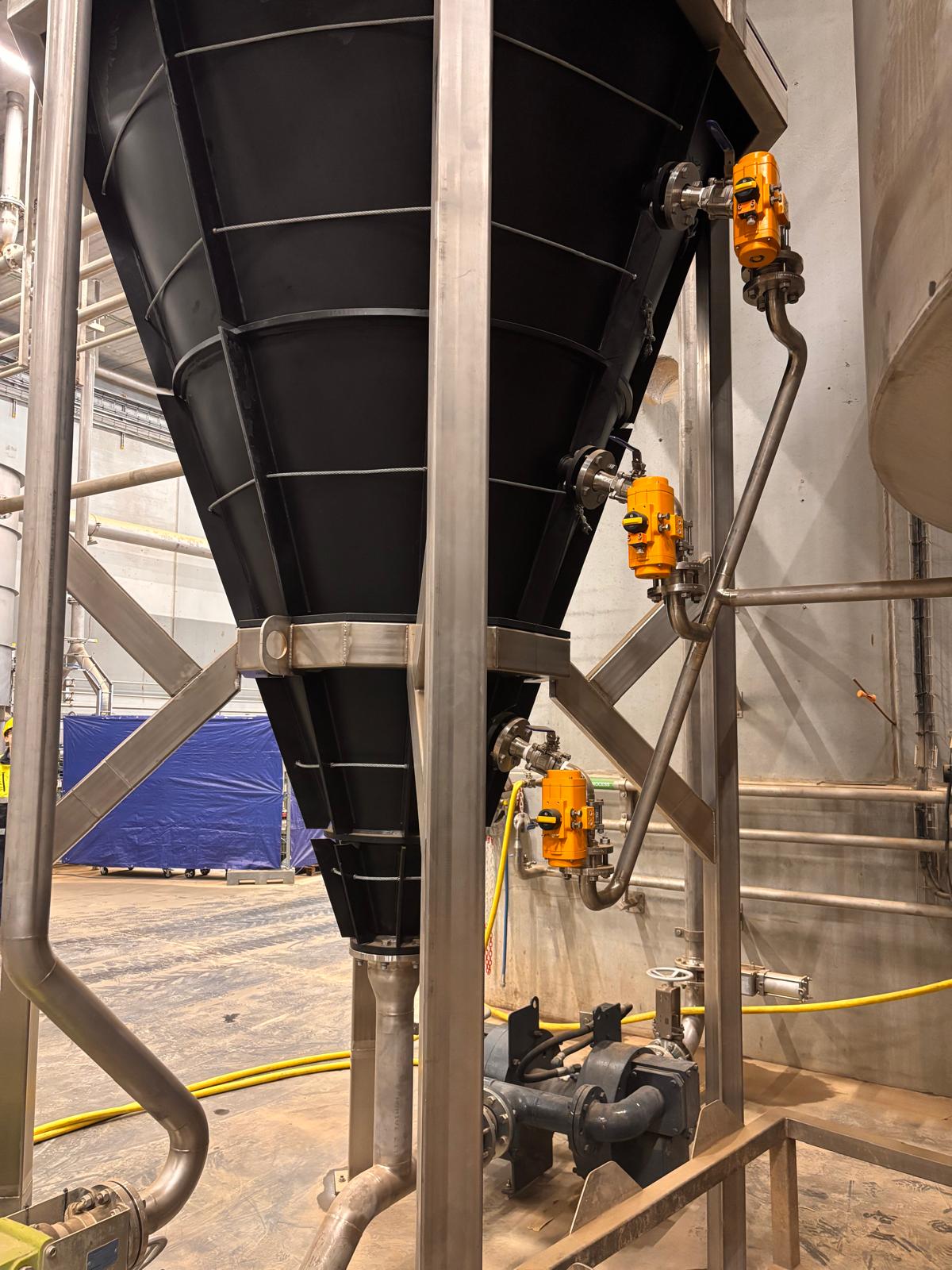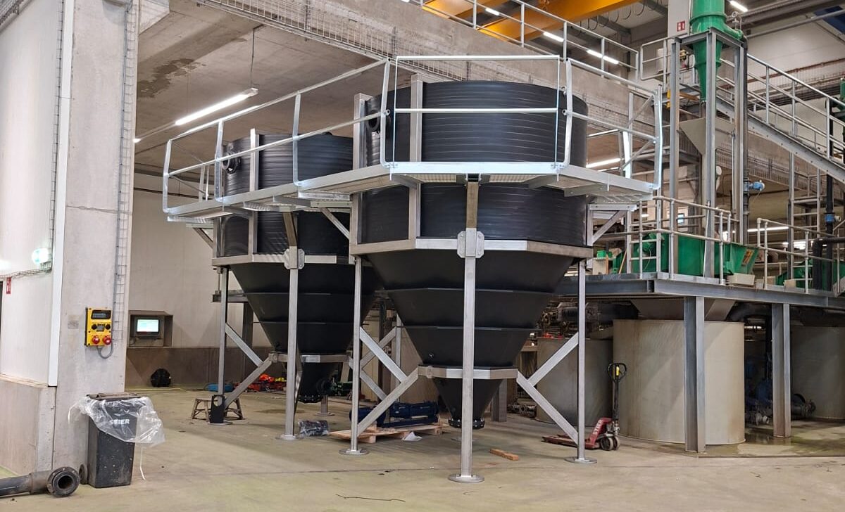 Onderaan de conus bevinden zich trilmotoren die het bezonken materiaal laten inklinken. Hierdoor wordt de vaste fractie compacter, bevat deze minder vocht en kan hij gelijkmatig worden afgevoerd zonder risico op ophoping of brugvorming. Het ingeklonken zand en slib worden vervolgens automatisch uitgevoerd via een schroefvijzel naar een container of opvangbak, waardoor het materiaal eenvoudig en kostenefficiënt te hanteren is.