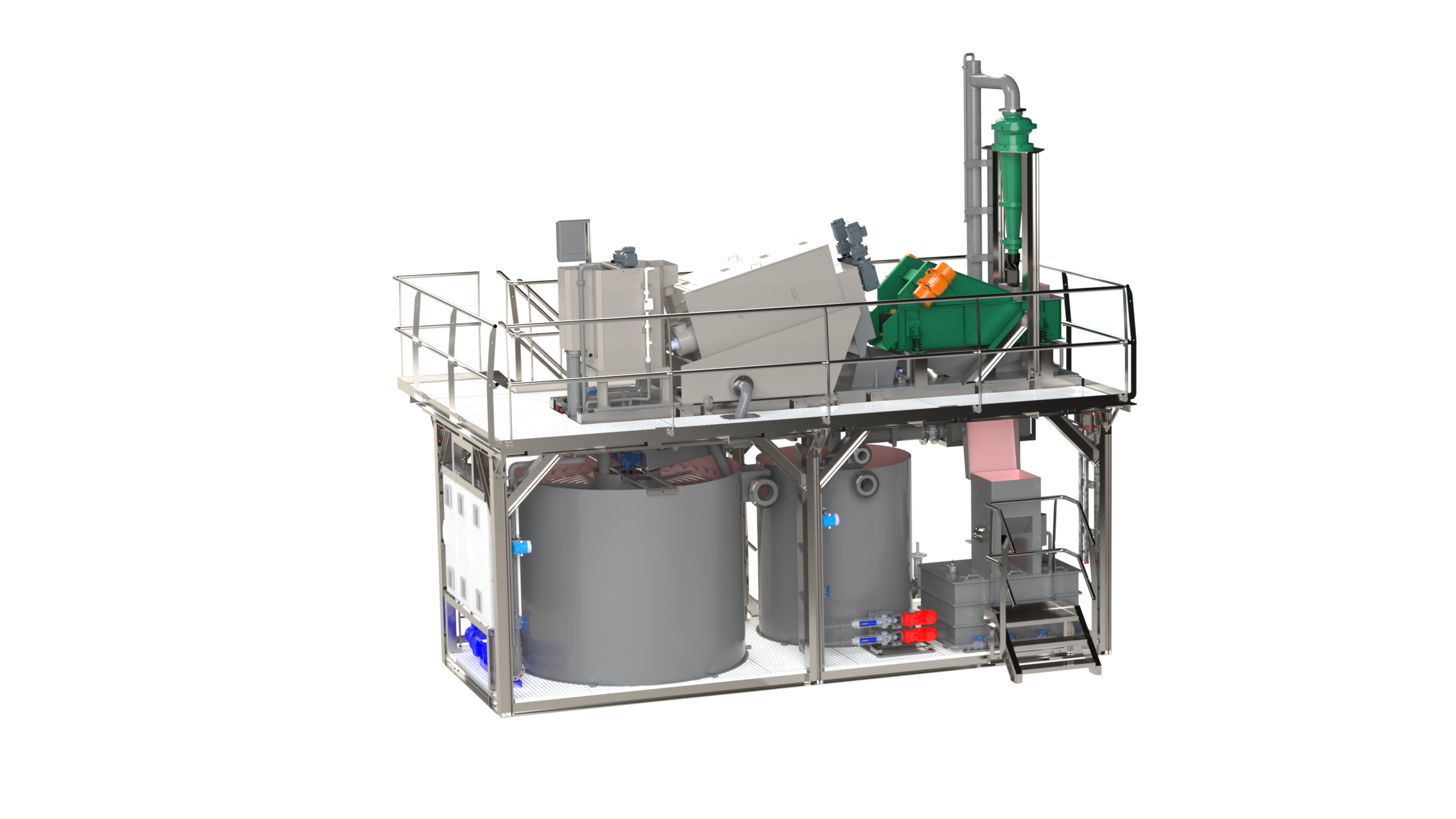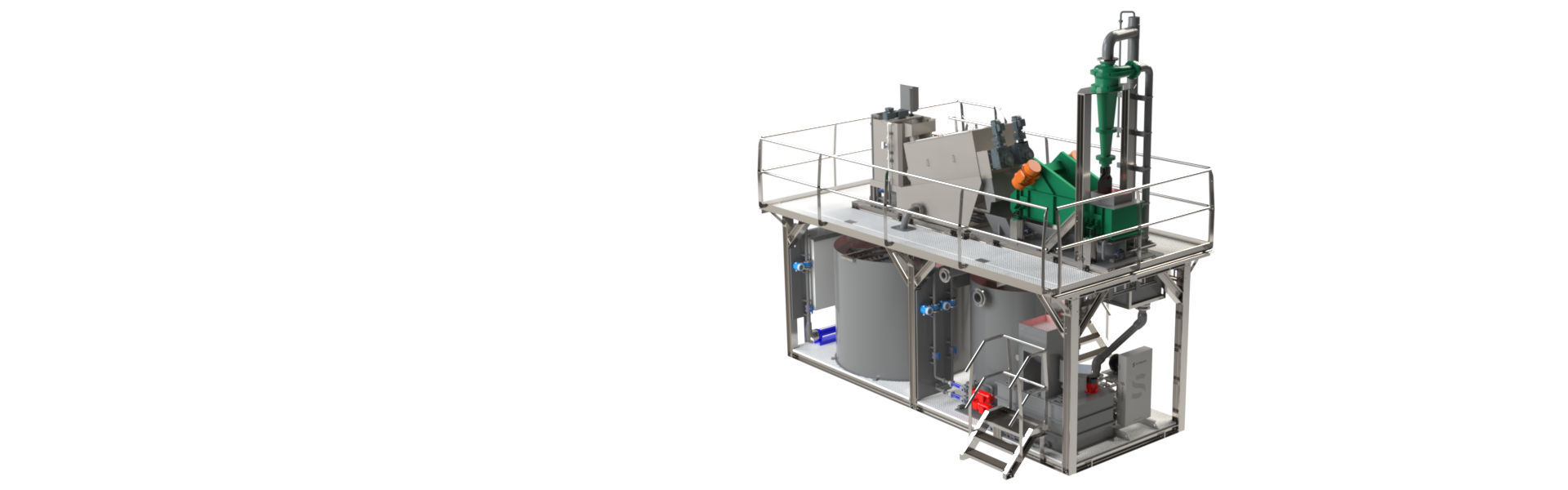De installatie kan waterstromen tot 50 m³/uur verwerken, afkomstig van het wassen van aardappelen of groenten. Het systeem is opgebouwd uit twee op elkaar gestapelde skids, waardoor er minder dan 20 m² vloeroppervlak nodig is.